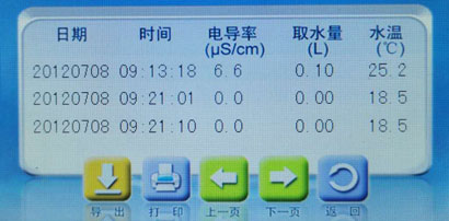 本仪器具有完善的报警提示功能,包括低压报警、原水水质报警、纯水水质报警、超纯水水质报警以及各种耗材使用到期报警,报警发生时,自动弹出报警菜单界面、显示当前报警信息。